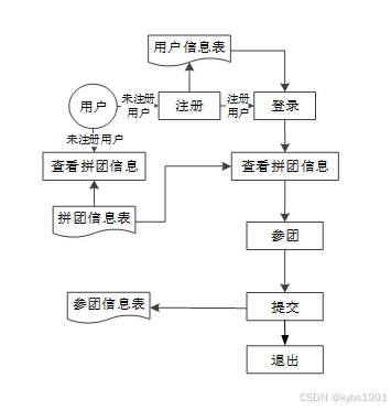 分析完高校拼团信息管理系统的数据流,那么接下来我们来看系统的业务流程,图2-4就是业务流程图:
