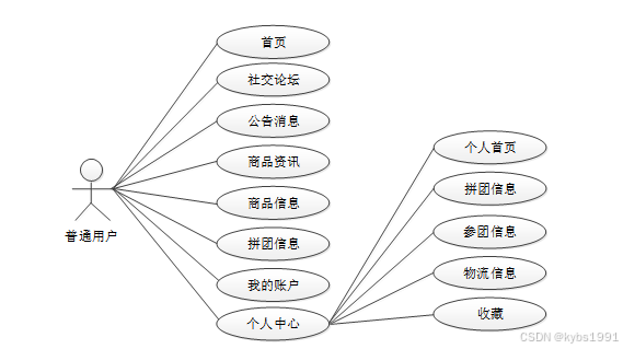 图2-1 拼团购物平台普通用户角色用例图