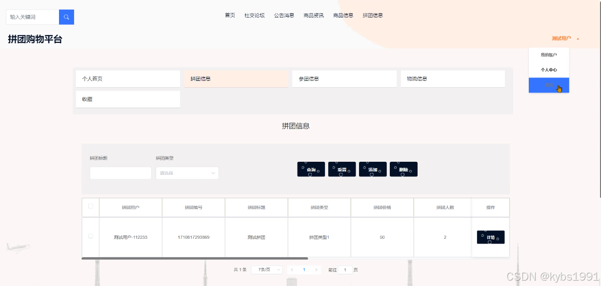 管理员添加参团信息界面测试: