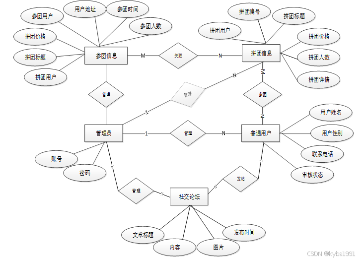 下面是整个拼团购物平台中主要的数据库表总E-R实体关系图。