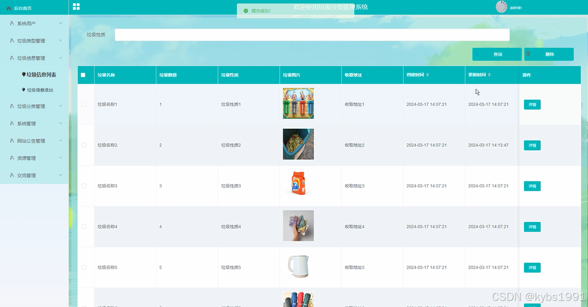垃圾类型管理: 管理垃圾的分类信息,包括添加、删除和编辑垃圾分类。