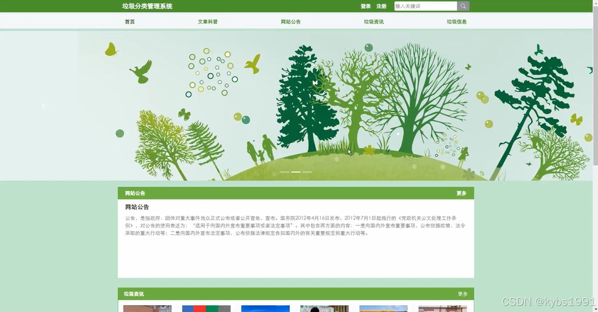 综上所述,本文基于Spring Boot框架设计与实现的垃圾分类管理系统,通过整合科普教育、网站公告、垃圾资讯发布、垃圾信息查询、垃圾分类指导以及论坛交流等功能模块,为用户提供了一个全面、便捷、高效的垃圾分类管理平台。该系统的成功实现对于推动垃圾分类工作的普及和发展具有重要意义。