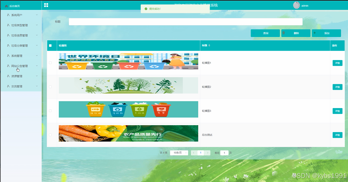 轮播图管理: 管理系统首页的轮播图信息,提供系统宣传和通知功能。