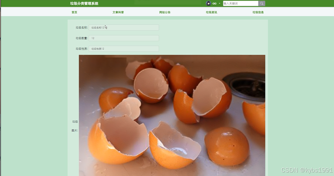 In summary, this article designs and implements a garbage classification management system based on the Spring Boot framework. By integrating functional modules such as popular science education, website announcements, garbage information publishing, garbage information querying, garbage classification guidance, and forum communication, it provides users with a comprehensive, convenient, and efficient garbage classification management platform. The successful implementation of this system is of great significance for promoting the popularization and development of garbage classification work.