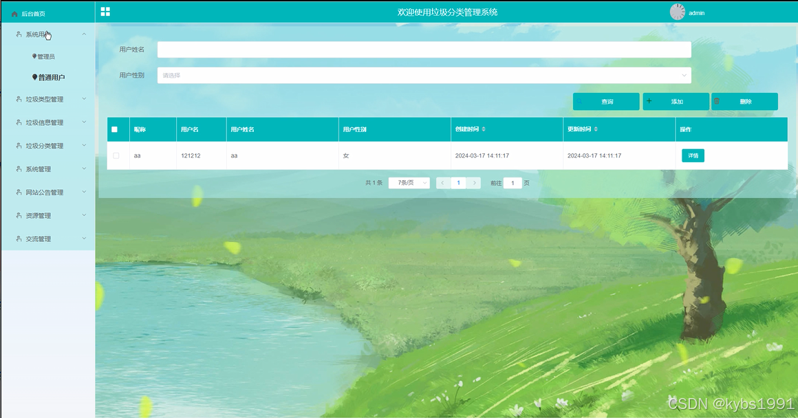 基于springboot的垃圾分类管理系统中的管理人员是可以对注册的普通用户进行管理的,也可以对管理员进行管控。界面如下图4-6所示。