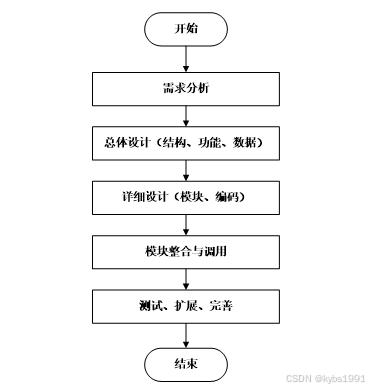 基于springboot的垃圾分类管理系统开发时,首先进行需求分析,进而对系统进行总体的设计规划,设计系统功能模块,数据库的选择等,本系统的开发流程如图2-1所示。