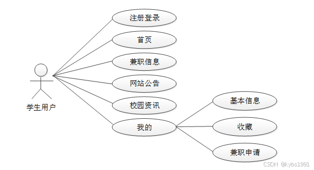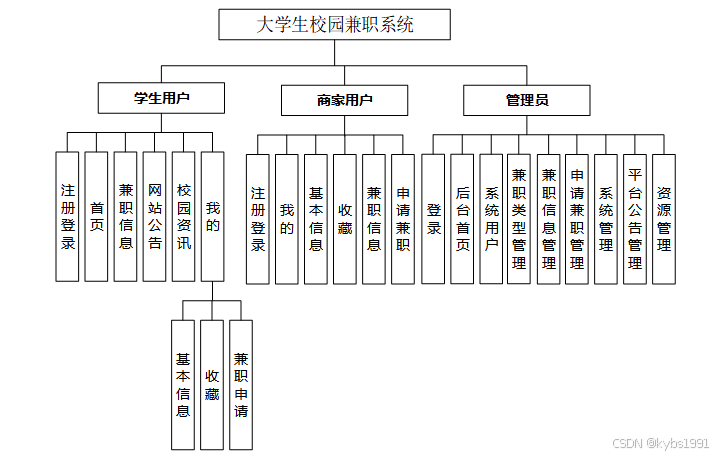 大学生校园兼职系统我划分为了学生用户、商家用户和管理员模块这三大部分。