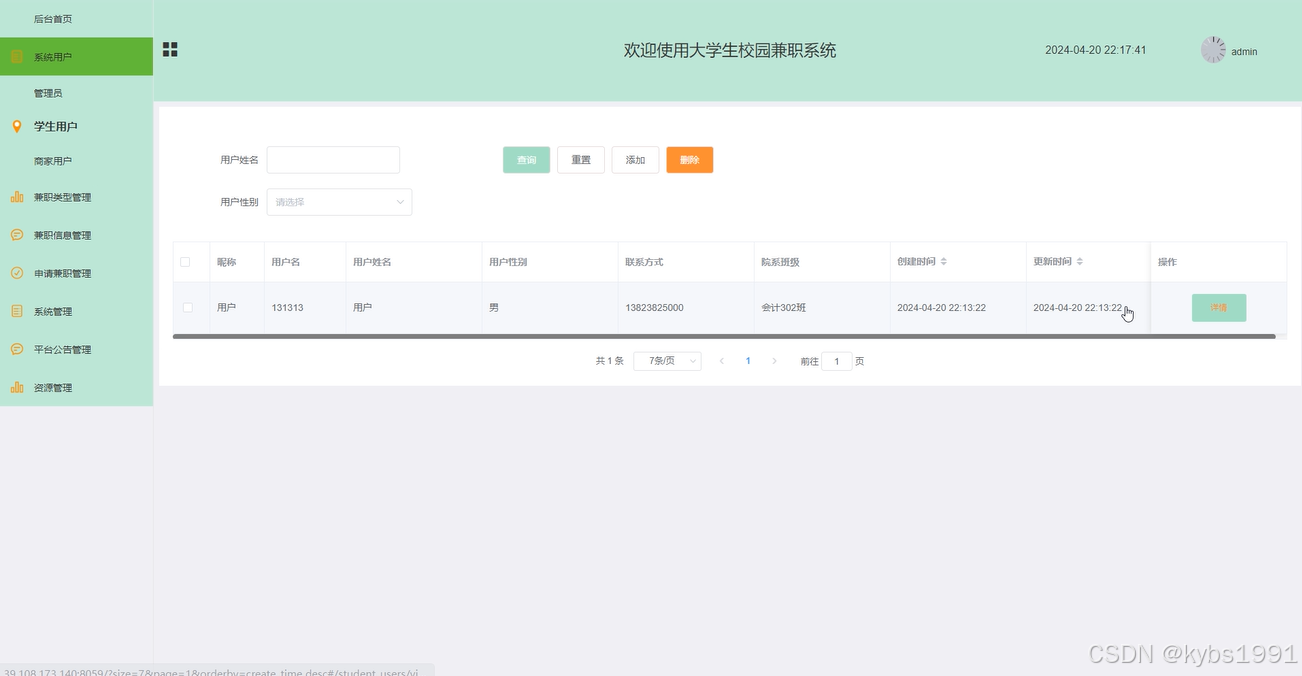 2.系统用户管理:管理员可以全面管理系统用户,包括管理员、学生用户和商家用户。具备增删改查和查看详情的功能,确保用户信息的准确性和完整性。