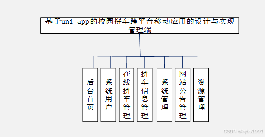 通过校园拼车跨平台小程序,不仅支持客户的登录,还支持对拼车管理、拼车信息管理查看,并且提交全面的数据和信息,从而满足用户的各种需求。此外,该软件还支持在线拼车、为客户带来更为便利的操作体验,并且通过对客户的人性化反馈,为客户带来更为全面的服务体验。根据系统功能需求建立的模块关系图如下图: