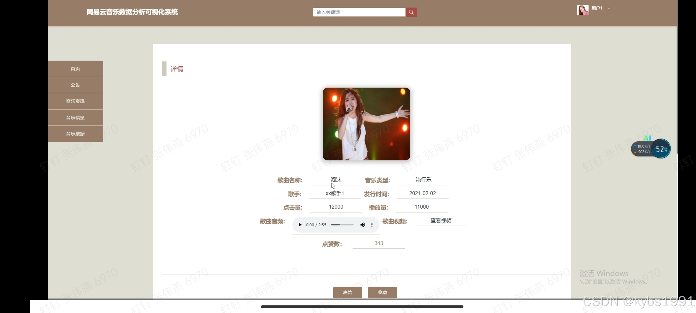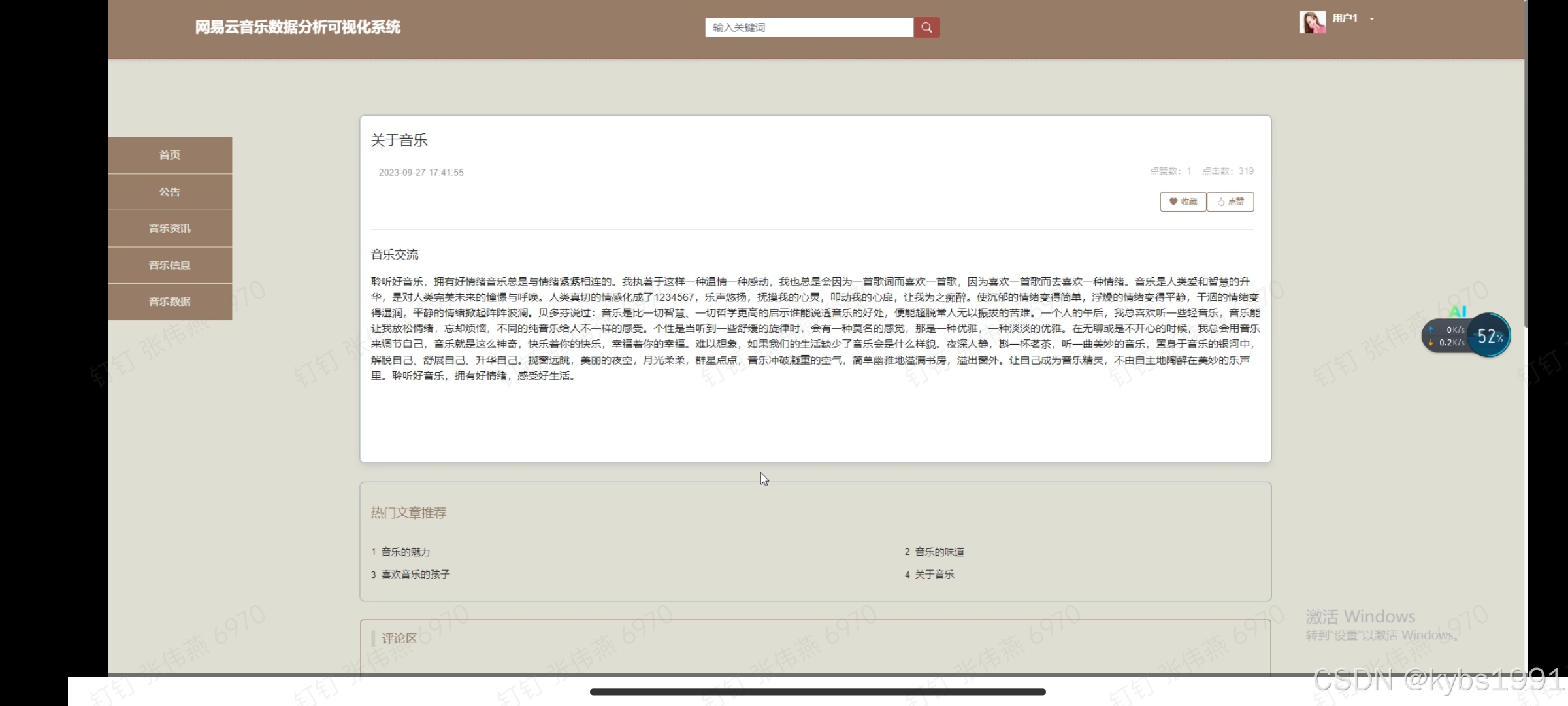 用户在音乐资讯页面可以查看、收藏、评论对应的资讯信息,音乐资讯包括标题、图片、类型、正文等信息。音乐资讯界面如下图所示。