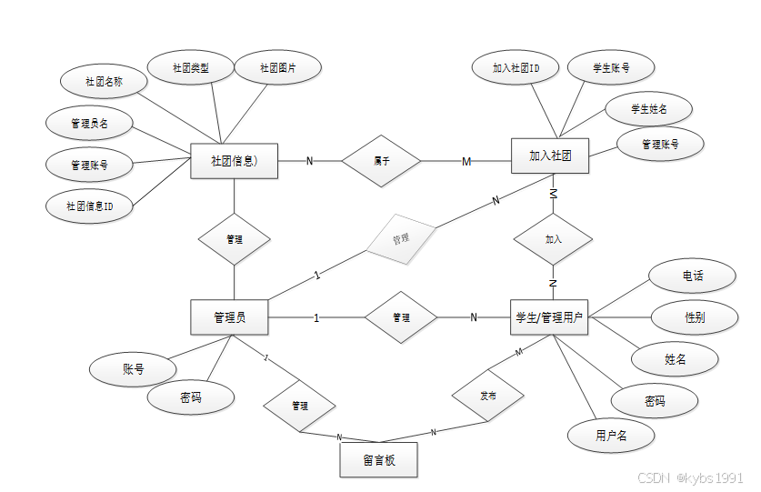 (3)智慧高校社团系统总E-R图如下图3-5所示