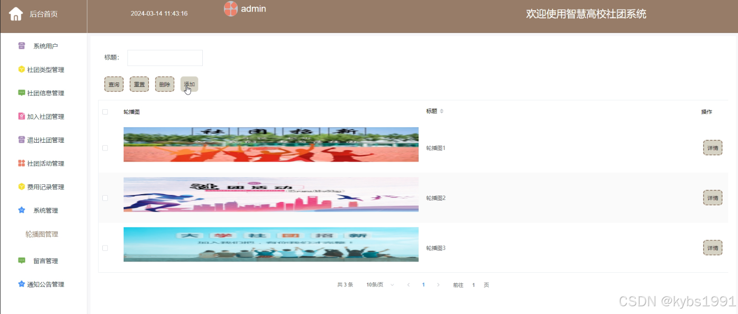 轮播图管理,管理员在对轮播图进行添加、修书或删除操作,如图4-13所示。