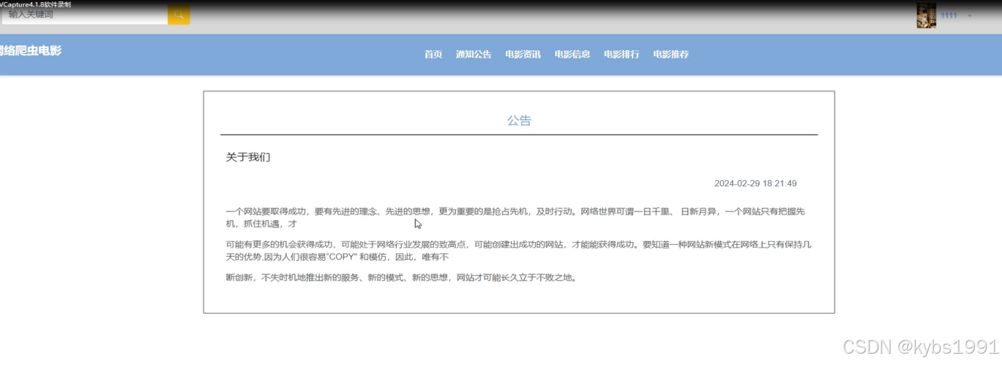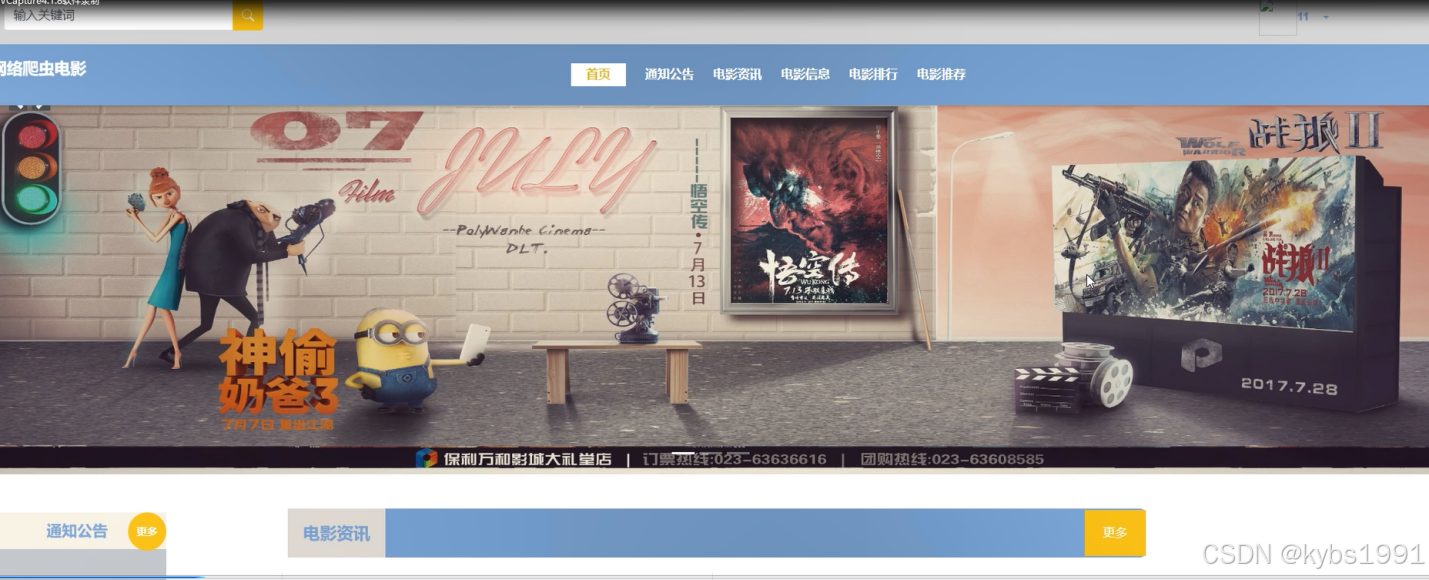 首页: 展示系统概况、最新通知公告、电影资讯等,方便用户浏览和发现新内容。