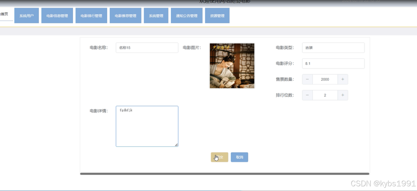 图4-12电影推荐添加管理界面图