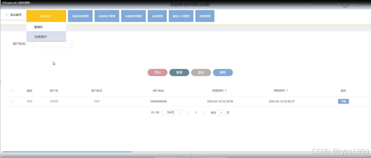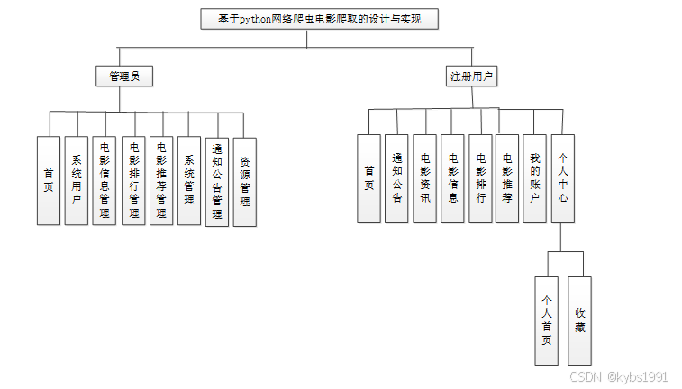 网络爬虫电影爬取的设计与实现划分为了注册用户管理模块和管理员模块这两大部分。