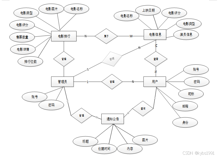 下面是整个网络爬虫电影爬取的设计与实现中主要的数据库表总E-R实体关系图。