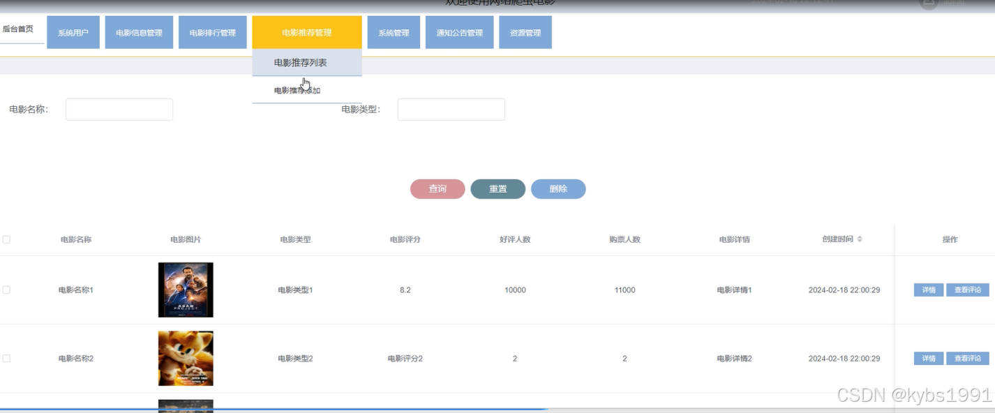 图4-11电影推荐列表管理界面图
