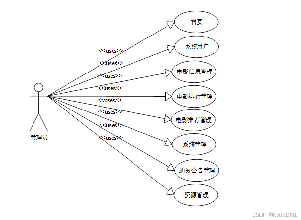 web后台管理上的管理员是维护整个网络爬虫电影爬取的设计与实现中所有数据信息的,管理员有登录、后台首页、系统用户、电影信息管理、电影排行管理、电影推荐管理、系统管理、通知公告管理、资源管理等功能。管理员角色用例如图2-3所示。