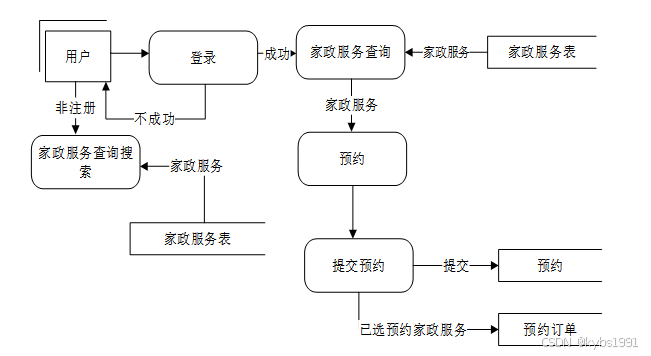 开发家政服务系统最主要的一个目的就是实现用户对家政服务的在线预约,图2-4就是系统的数据流图。