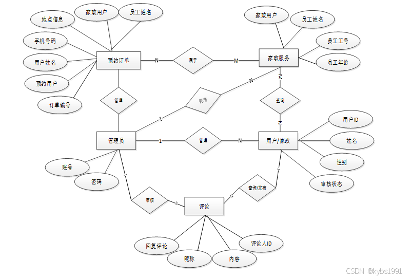下面是整个家政服务系统中主要的数据库表总E-R实体关系图。