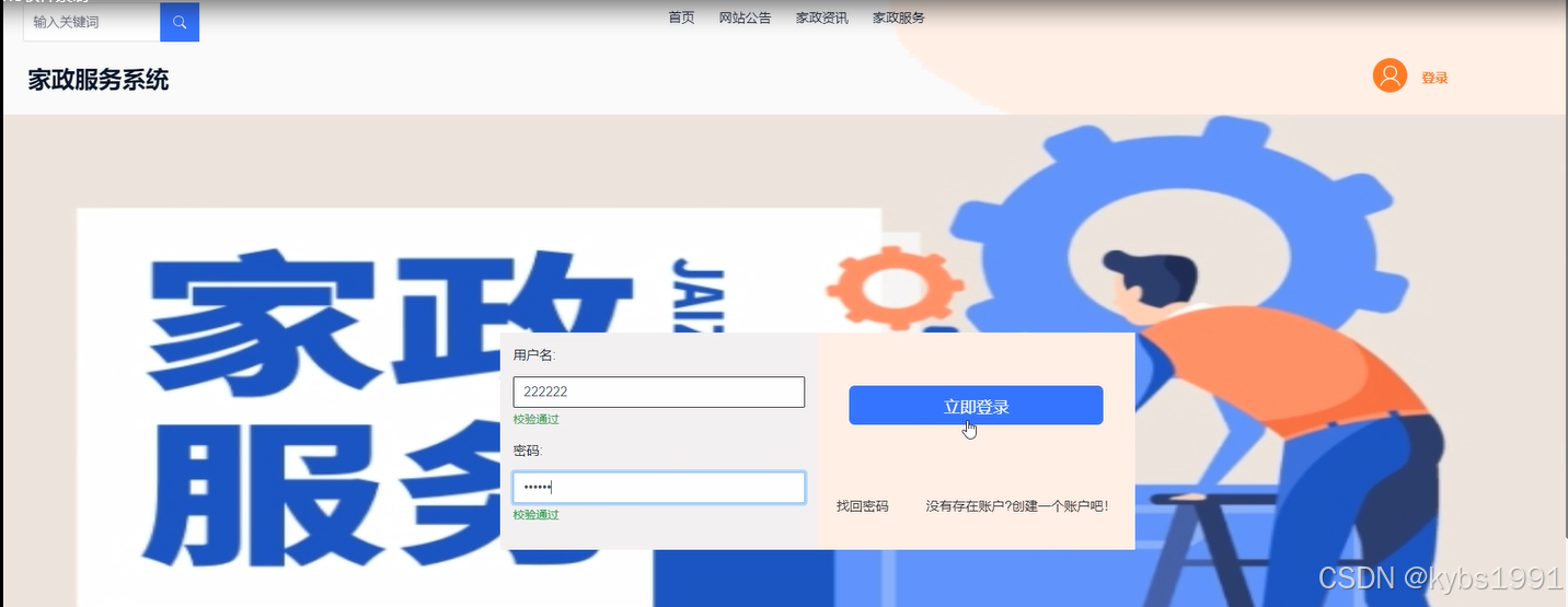 (2)查看家政服务系统的首页信息:家政服务系统的首页信息包含了首页、交流论坛、网站公告、家政资讯、家政服务等。