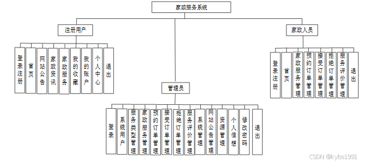 家政服务系统是中需要存储不少家政服务信息,其模块功能结构,具体的结构图如下: