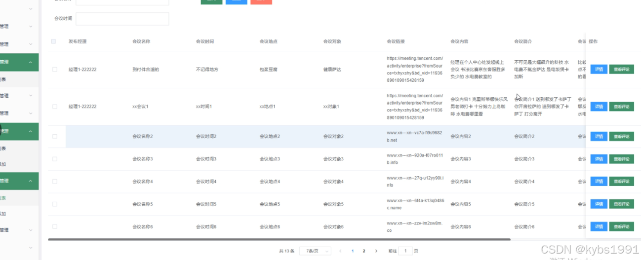 线上会议管理:管理员可以查看线上会议列表,可以对某一线上会议查看详情,也可添加新的线上会议。界面如下图所示。
