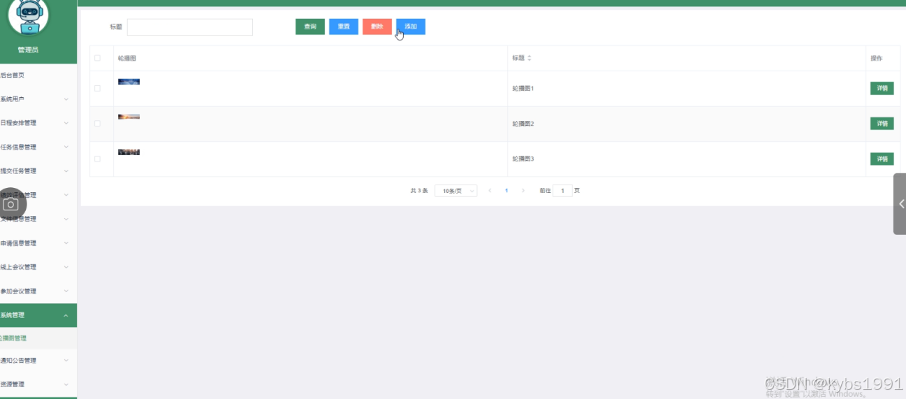 系统管理:管理员可以对系统商业轮播图进行修改,增加和删除等操作,界面如下图所示。