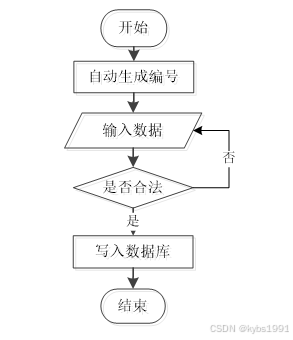 用户成功登入系统后就能够实现增加数据的操作,增加数据的编号是特定的,系统生成,用户不能随意填写,除了编号以外,其他增加信息用户自己填写,填写后的信息经过系统验证,验证合法通过就显示增加数据成功了,相反的话,就没有增加成功,图2-3显示的就是在增加数据时的流程。