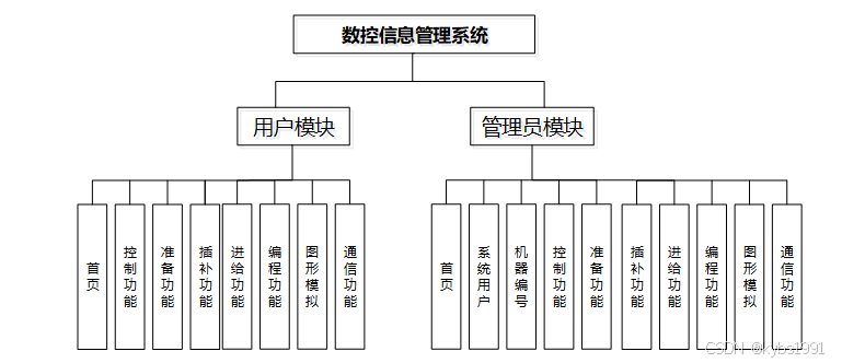 按照数控信息管理系统的角色,我划分为了注册用户模块和管理员模块这两大部分。