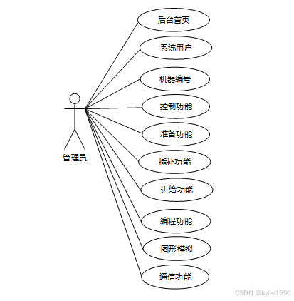 该系统主要包括管理员和注册用户两个角色,提供了一系列功能模块,包括机器编号、控制功能、准备功能、插补功能、进给功能、编程功能、图形模拟和通信功能等。管理员可以管理系统用户和机器编号,而注册用户则可以通过系统进行数控操作和管理。