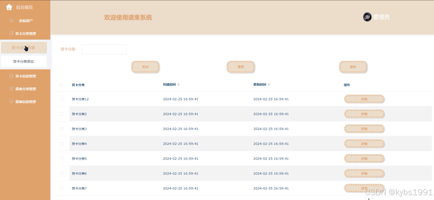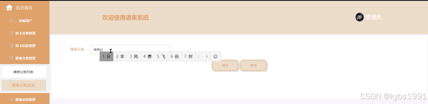 5.管理员功能,管理员可以对用户或者请柬分类、贺卡分类、敏感词等进行管理。