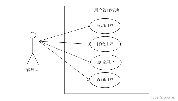 (5)用户管理模块:用户管理是后台管理员独有功能,管理员可以对注册的用户进行修改、删除、查询、也可以添加新的用户。用户管理模块用例如下图2-5所示。