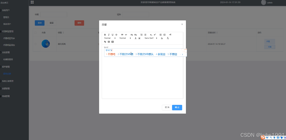 管理员拥有对前台普通用户发布的留言的管理功能,也可以对留言信息进行回复,留言回复管理界面如下图4-15所示。