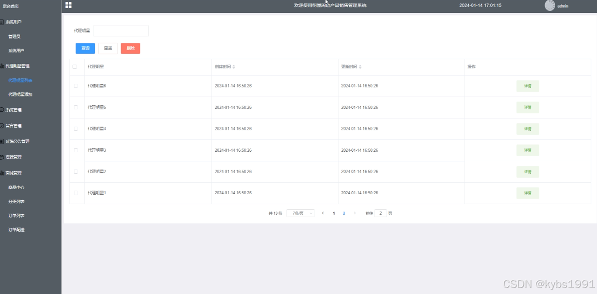 在后台系统管理中,管理员对代理明星信息进行添加、修改、删除、管理的功能。代理明星管理界面如下图4-13所示。