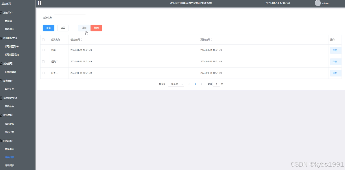 管理员拥有对商品的分类增删改查的功能,分类列表界面如下图4-18所示。