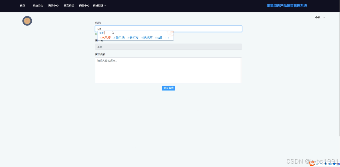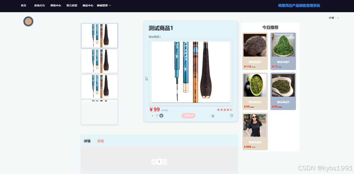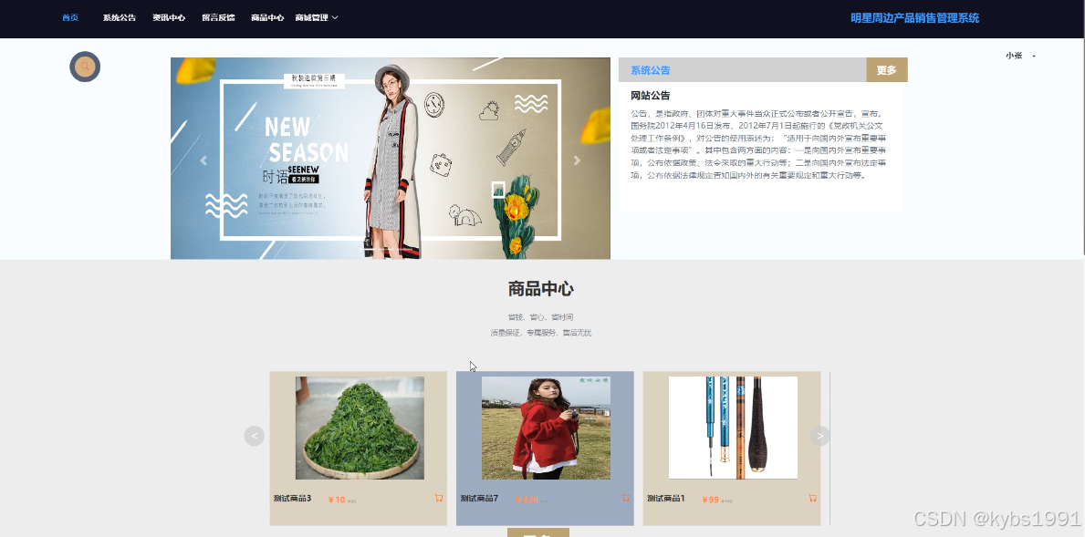 The SpringBoot star peripheral product sales management system developed this time is a special platform for selling star peripheral products online based on the current Internet plus era, so that people can enjoy the service of buying star peripheral products without going out and waiting for home delivery in a fast-paced living and working environment. This project mainly consists of two parts: the front-end and back-end. The target audience for these two parts is different. The front-end is used by a large number of fan users who need to purchase peripheral products of celebrities, while the back-end is used by program administrators. Users can browse products, register and log in, add intended products to shopping carts, pay and purchase a series of activities in the front-end. Administrators can manage users and act as agents for celebrity management in the back-end The application of this project includes system management, message management, system announcement management, resource management, and mall management. It enables fans to follow the pace of the times and meet the personalized needs of fan users, providing support for the development of related peripheral products.