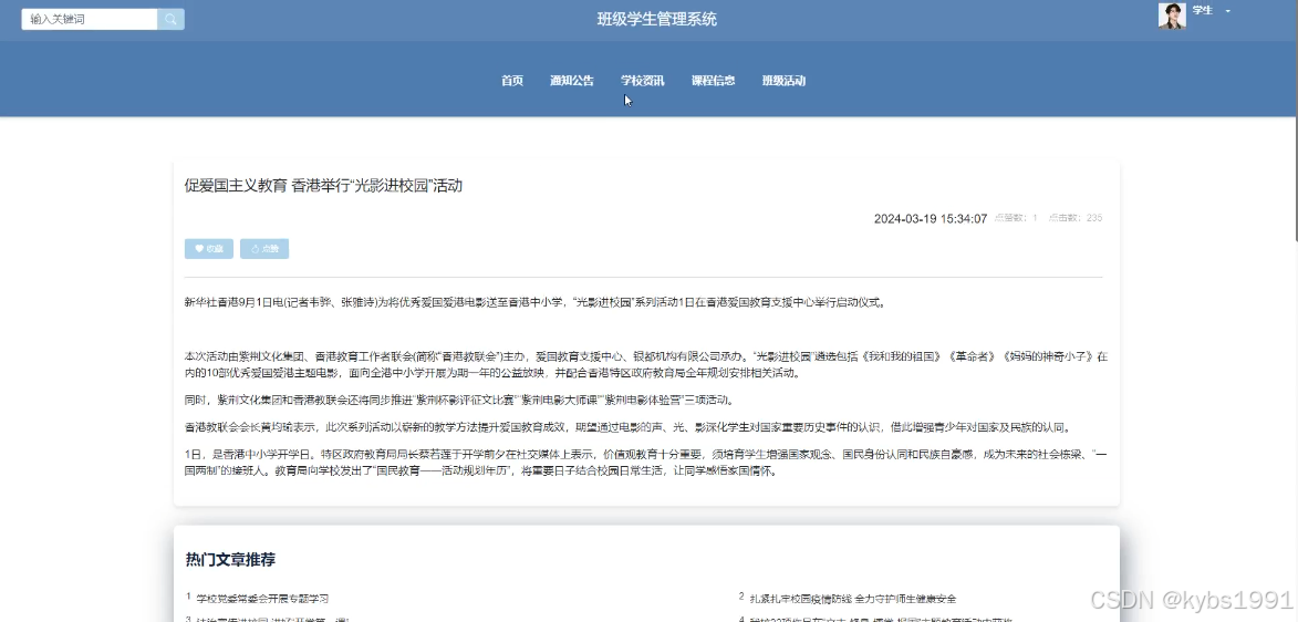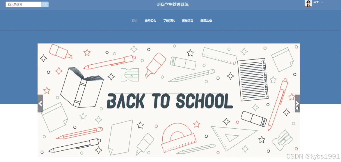 (2)查看班级学生管理系统的首页信息:班级学生管理系统的前台首页包括:首页、通知公告、学校资讯、课程信息、班级活动等。