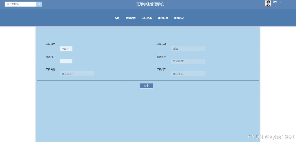 | 预期结果 | 提交以后,页面首页会显示新的课程信息信息 |