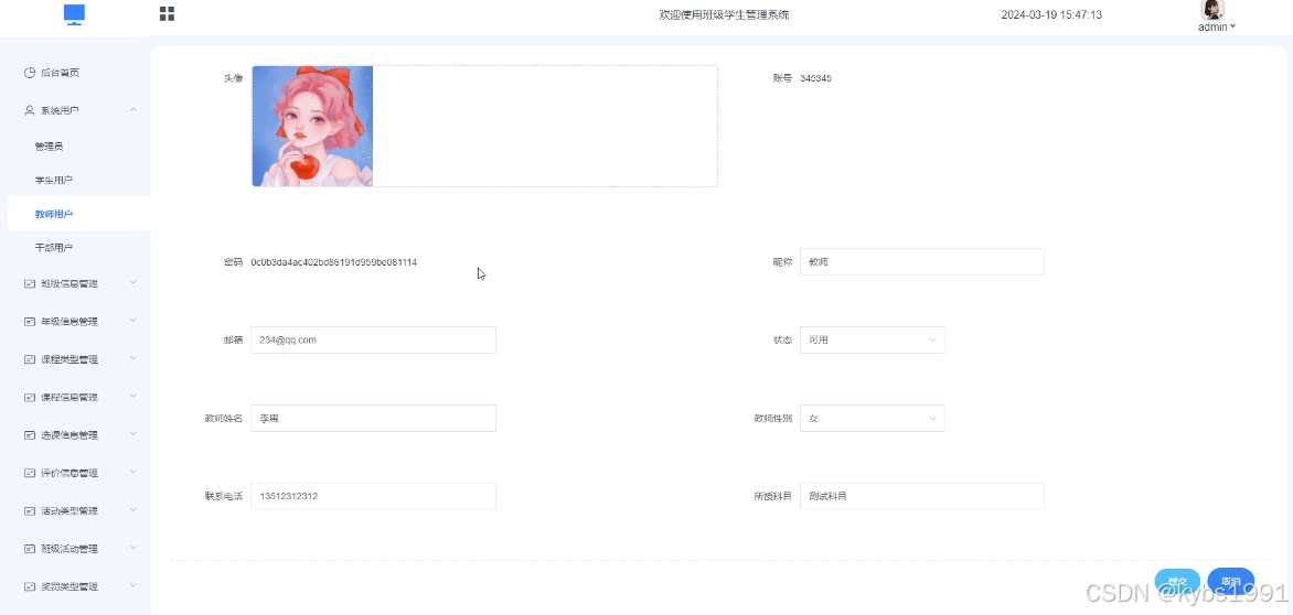 图4-10教师用户后台管理界面图