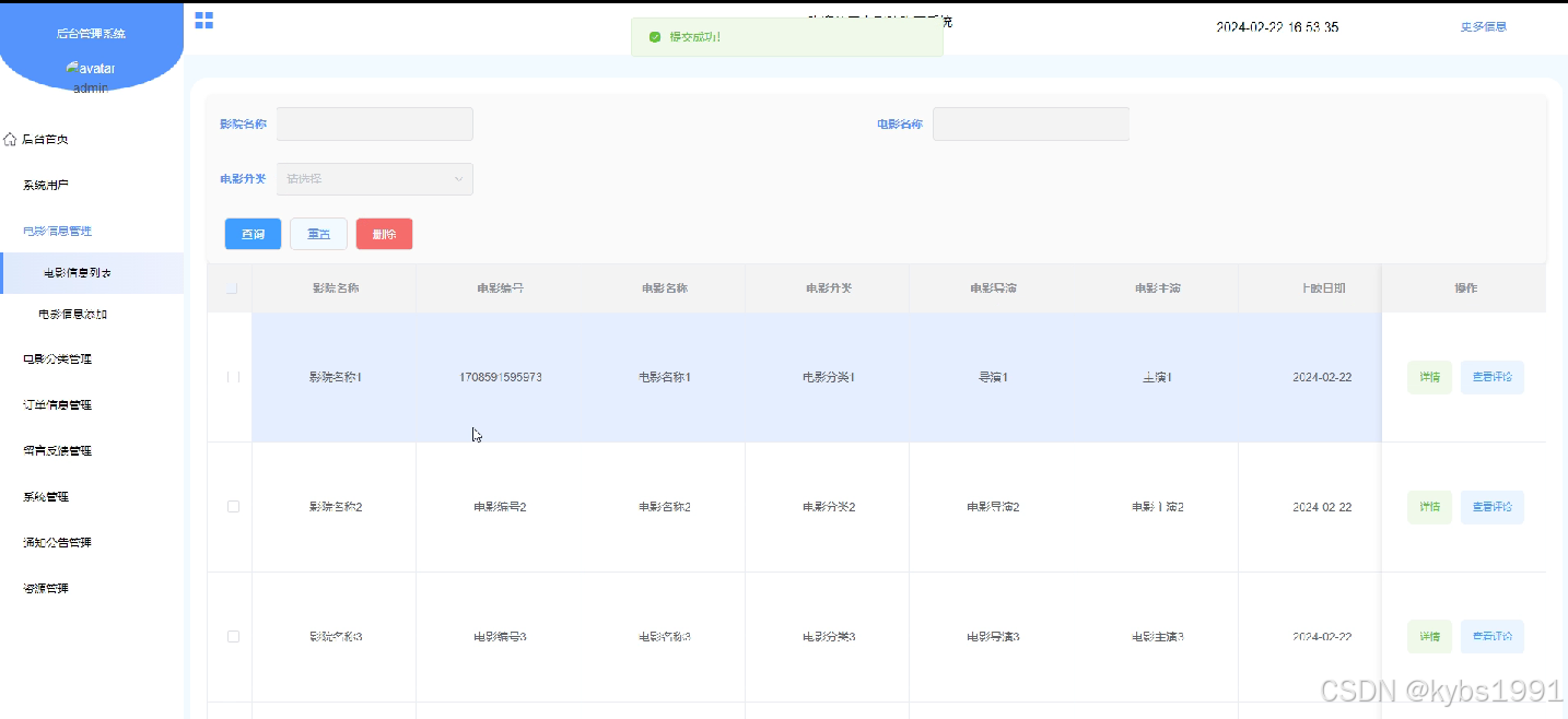 - 电影信息管理:管理员可以添加、编辑和删除发布电影信息,更新平台电影信息。