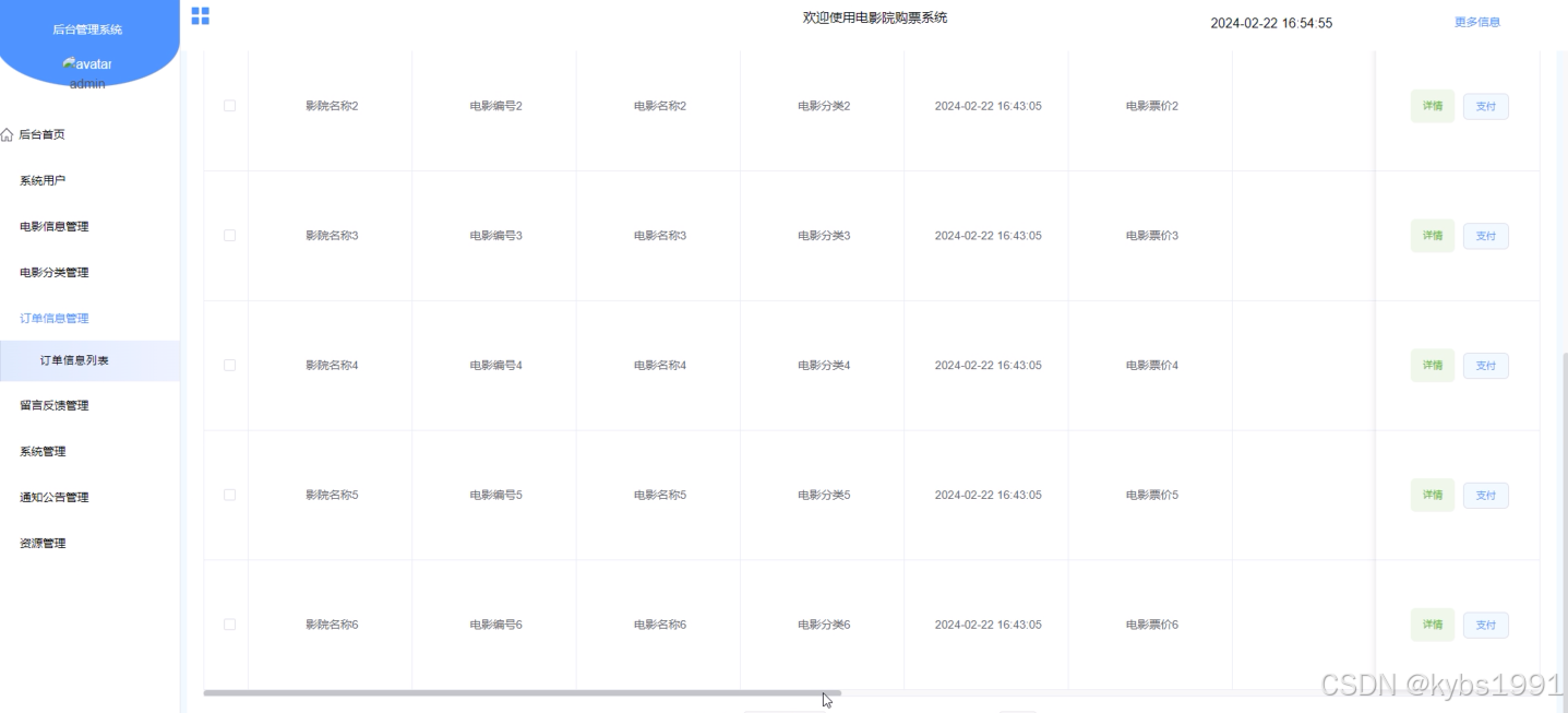 - 订单信息管理:管理员可对电影订单信息进行查看、维护管理。