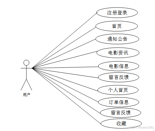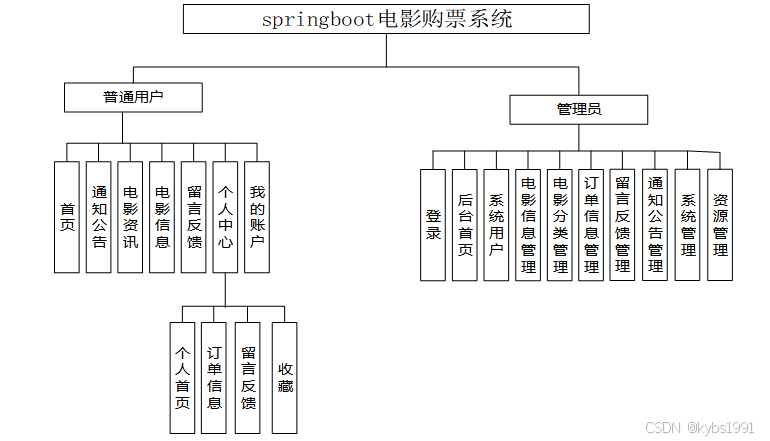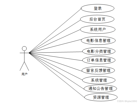 电影院购票系统将提供用户注册与登录、电影浏览与搜索、在线购票等功能,旨在促进电影院票的推广和销售,电影院购票系统主要划分为了用户管理模块和管理员模块两大部分,具体如下:
