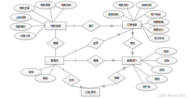 图3.2 电影院购票系统总E-R关系图
