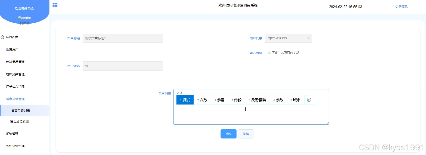 图4.5留言反馈管理界面图