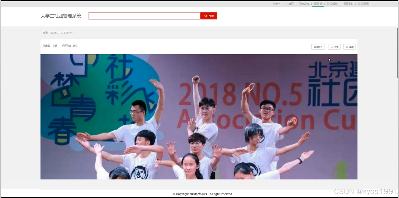 - 社团信息:用户可以查看社团信息列表中某一信息详情并进行点赞、收藏和发表评论操作。