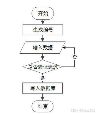 用户成功登入系统后就能够实现增加数据的操作,增加数据的编号由系统生成,用户不能随意填写,除了编号以外,其他增加信息用户自己填写,填写后的信息经过系统验证,验证通过后即可完成数据新增,数据新增的流程图如下图2-1所示。