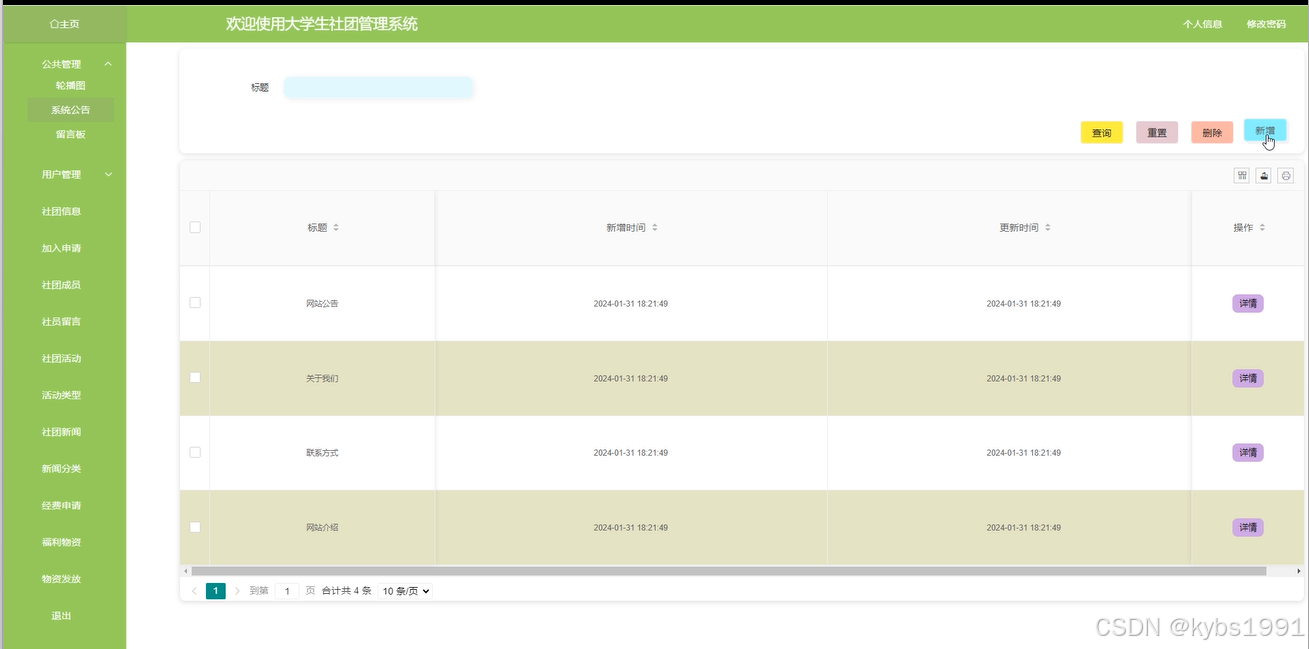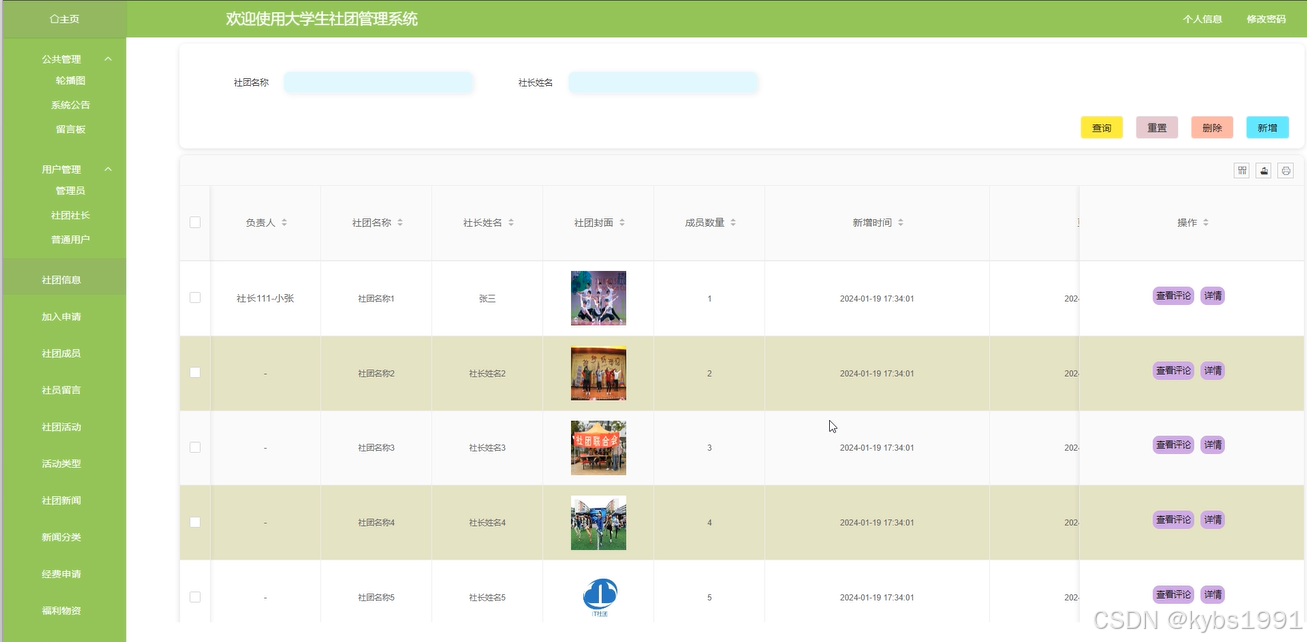 - 社团信息管理:管理员可以对社团信息进行增删改查操作。