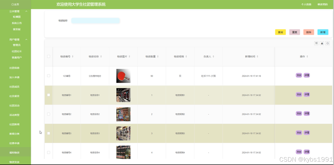 - 福利物资管理:管理员可以查看管理发放社团福利物资。
