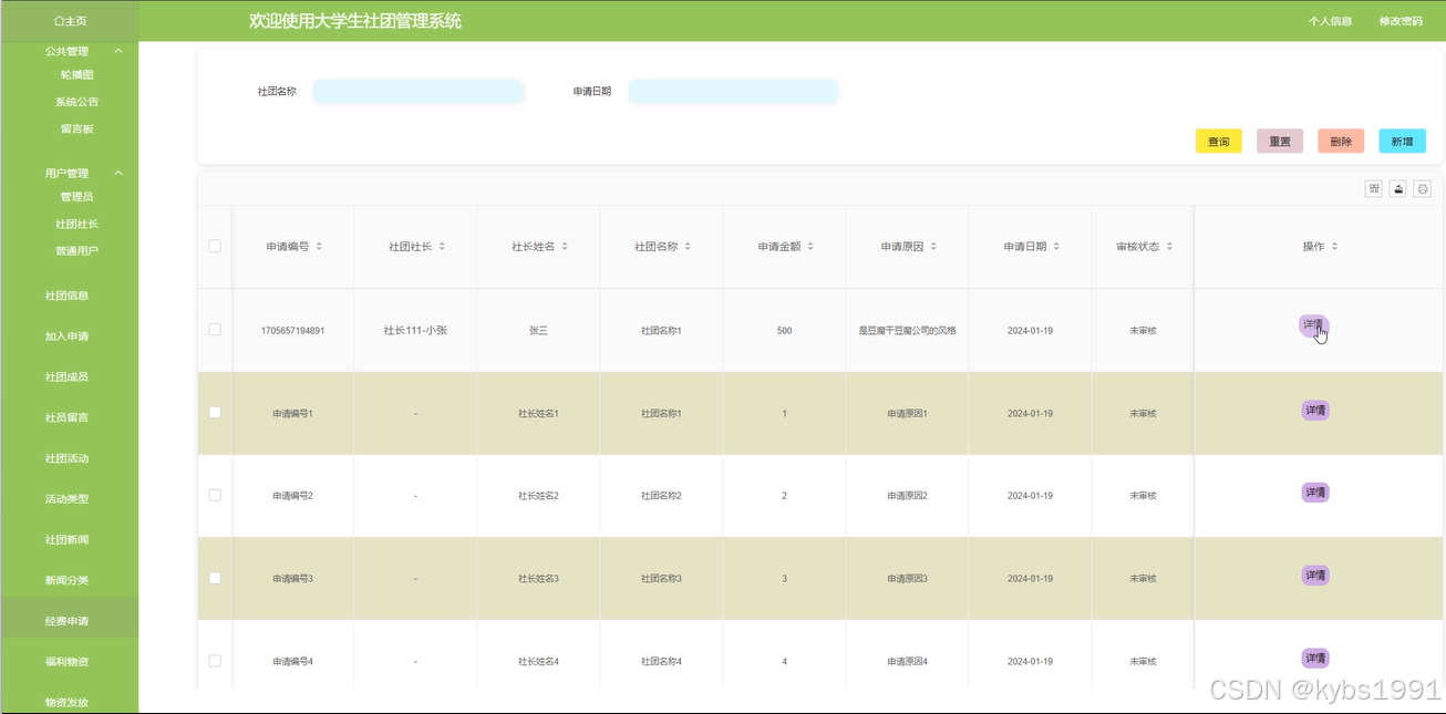 - 经费申请管理:管理员可以查看管理社团经费申请信息。
